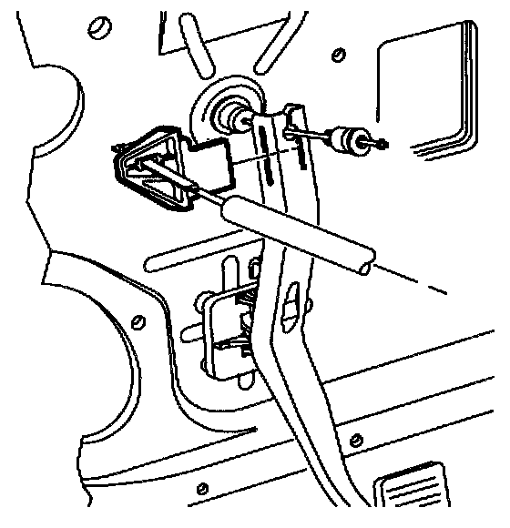 3. Disconnect cruise control rod bracket from accelerator pedal by squeezing tabs.