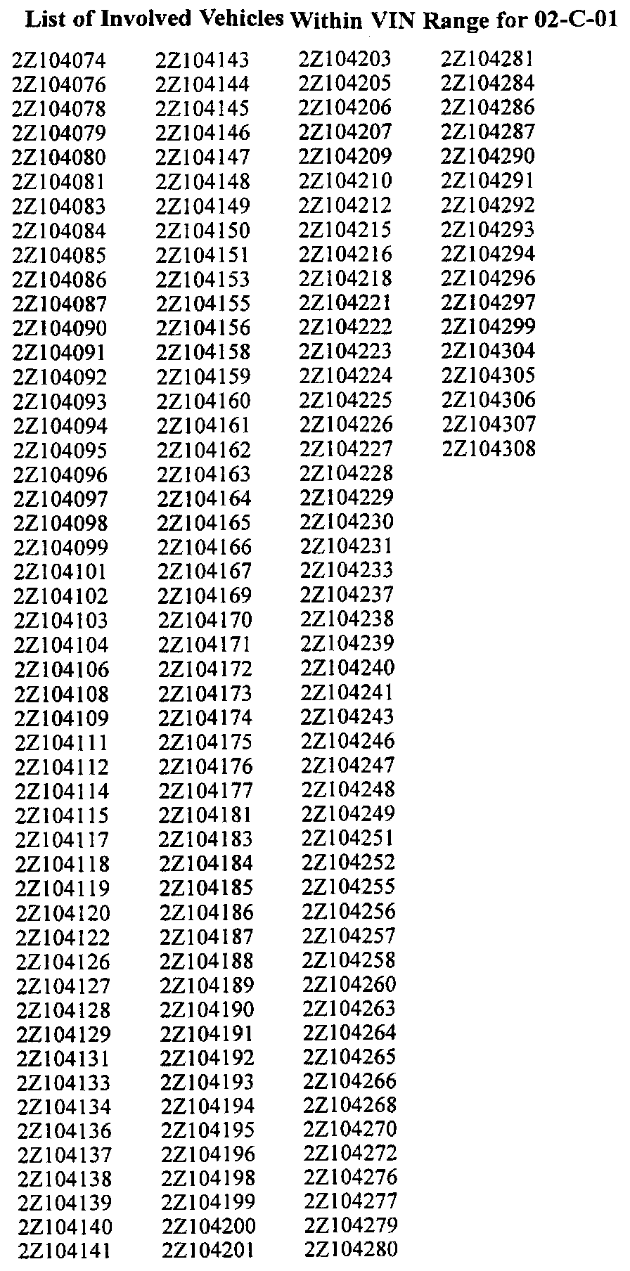 ^ VINs of vehicles, which according to Saturn records are in retail stock.