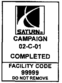 As a reminder, additional labels may be ordered from Saturn publications (1-800-828-2112, prompt 3, Item # S0300013A for the Campaign Completion Label, and item # S0300013B for the Clear Protective Cover).