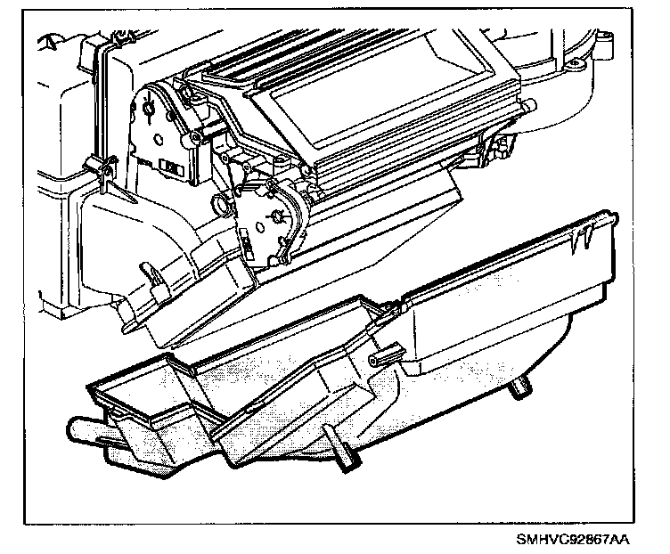 2. Remove evaporator (spraying perimeter of heater core seal with a soap and water mixture will ease removal).