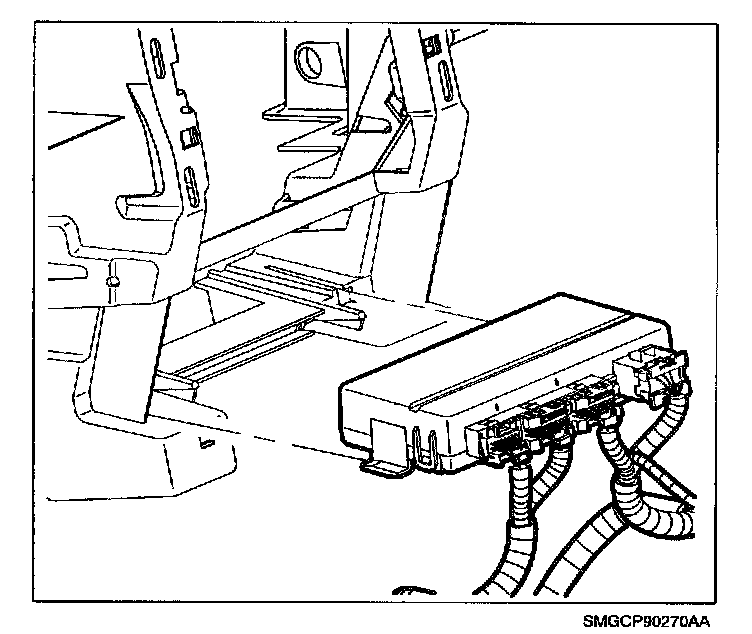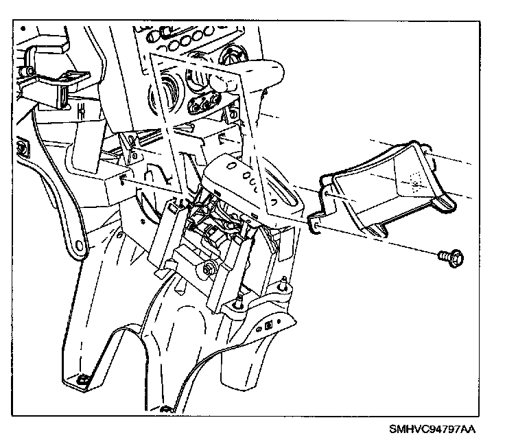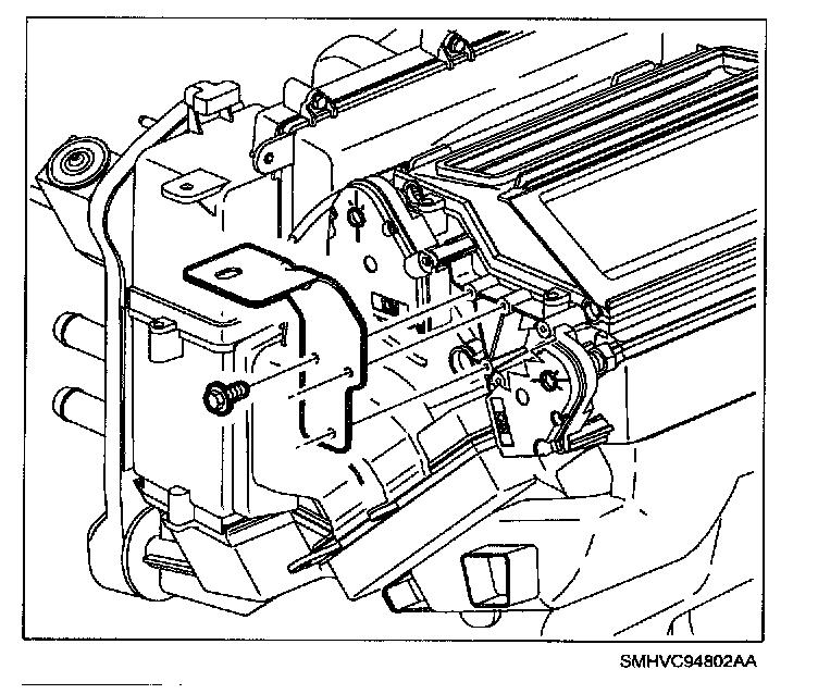 6. Install left HVAC module to cross car beam stamped metal L-Type bracket to HVAC module and cross car beam and tighten remaining module attachment fasteners.