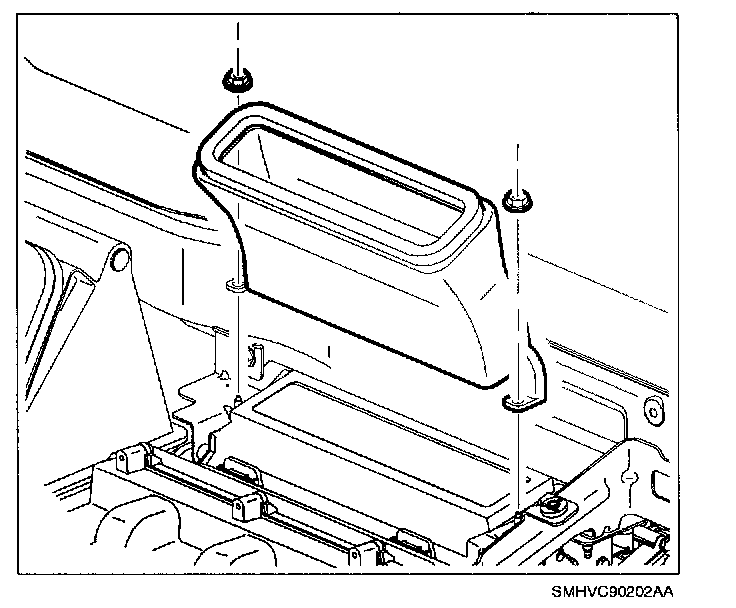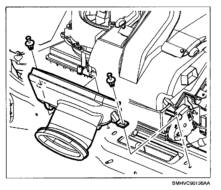 8. Install defroster duct to HVAC module nuts and defroster duct.