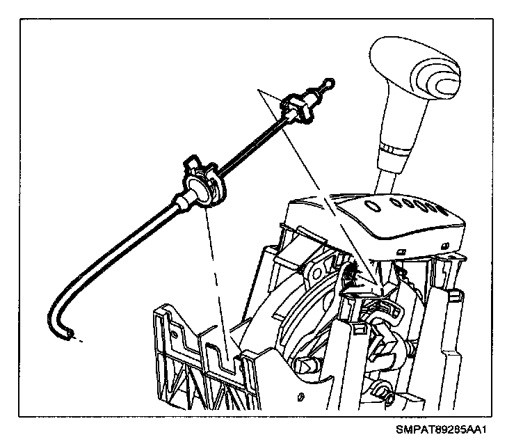 14. Install transaxle shift cable to shift lever and control assembly housing.