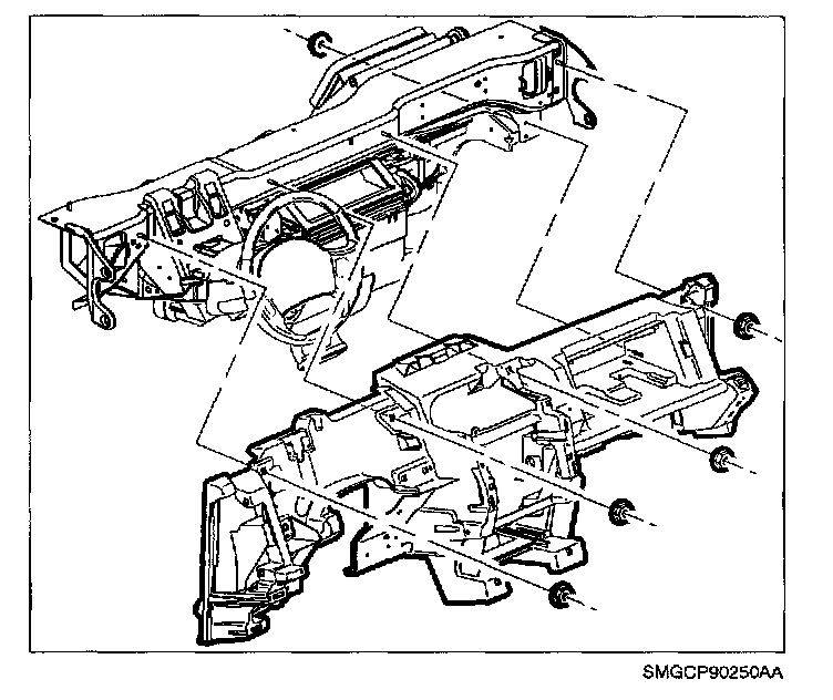 HVAC Module to Cross Car Beam Stamped Metal L-Type Bracket to Beam: 8 N.m (70 in-lbs)