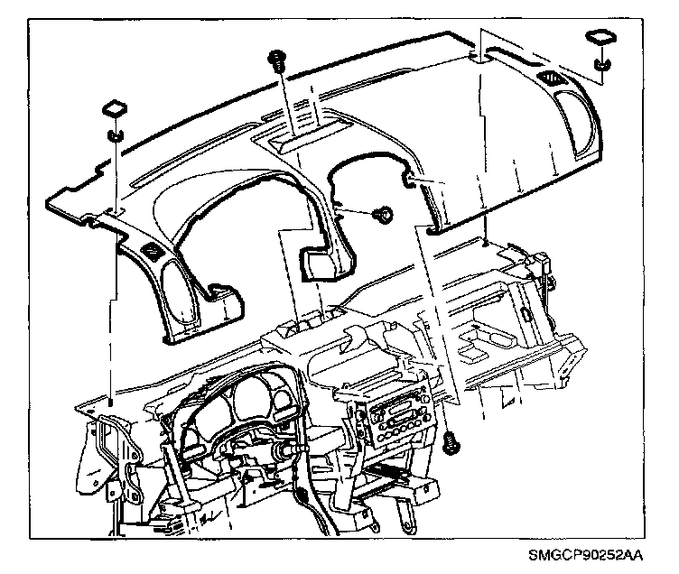 33. Install I/P top cover to cross car beam bolts.