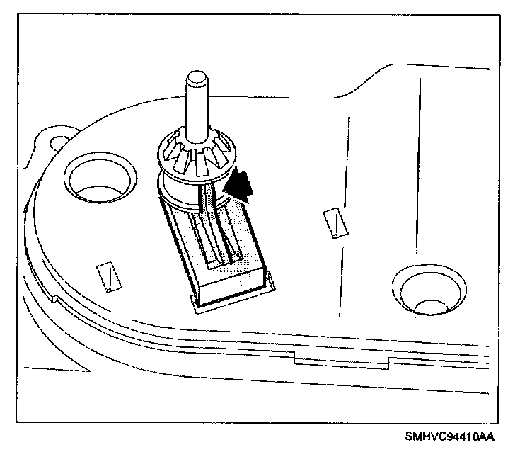 40. Align temperature cable lug with detent spring point (this centers the door in the module).