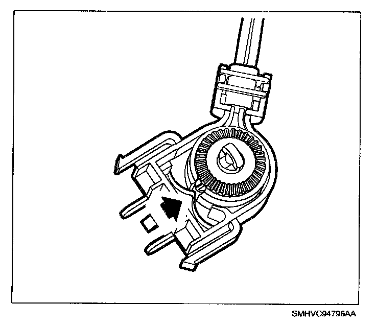 13. Install ignition lock cable to BTSI lever and control assembly housing.