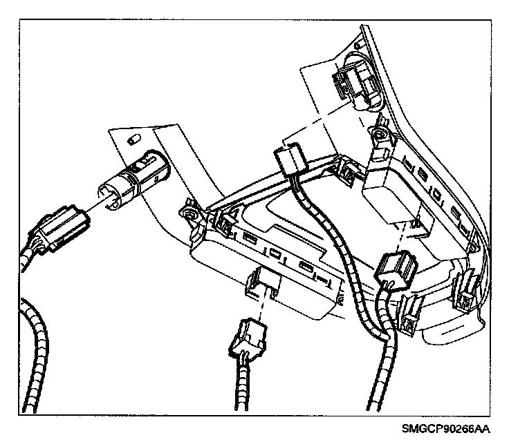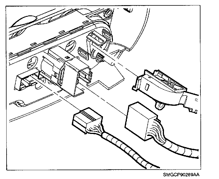 47. Connect wire harness to window switches, mirror switch and cigar lighter.
