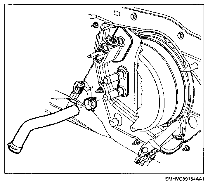 54. Install heater hose to heater core inlet.