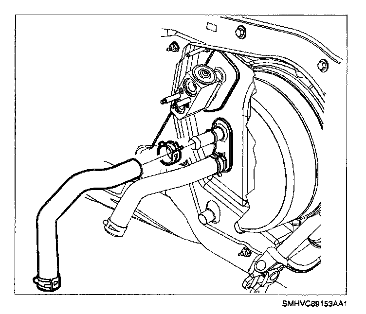 56. Install heater hose to heater core outlet.
