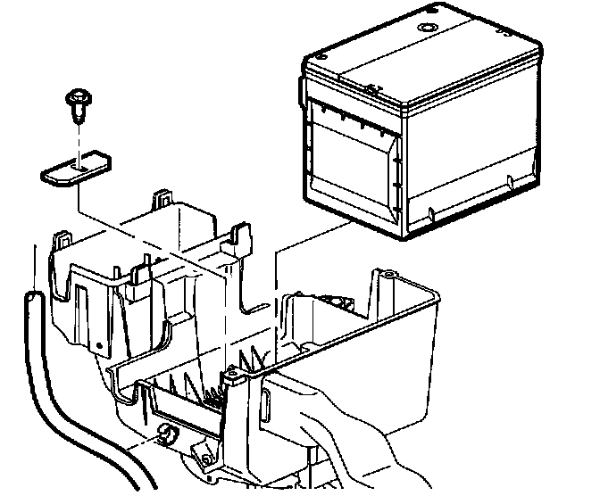 7. Loosen battery hold down bolt and remove battery and battery hold down.