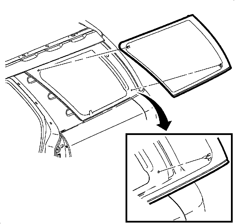 2. Remove the roof rear panel assembly. Refer to Roof Rear Panel Applique Replacement () in Exterior Trim.
