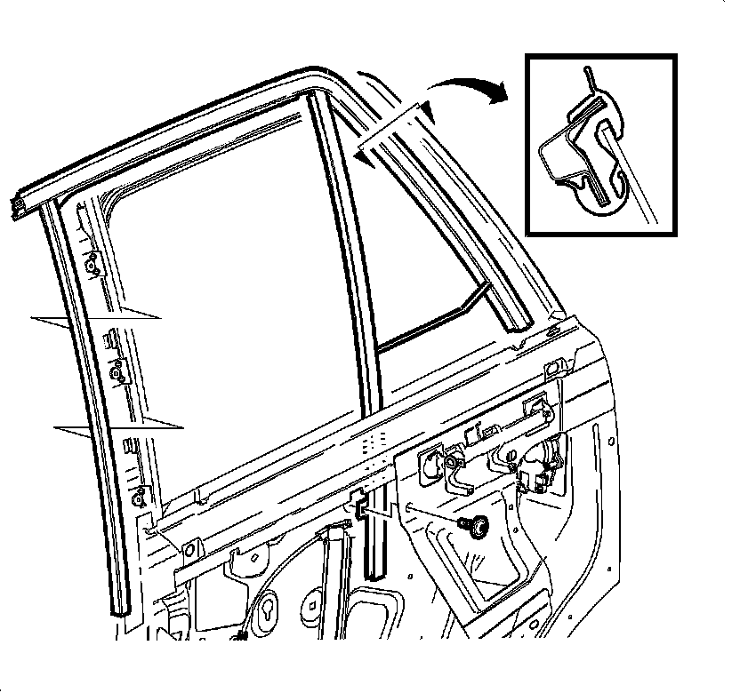 1. Remove the rear door window. Refer to Rear Side Door Window Replacement (Service and Repair).