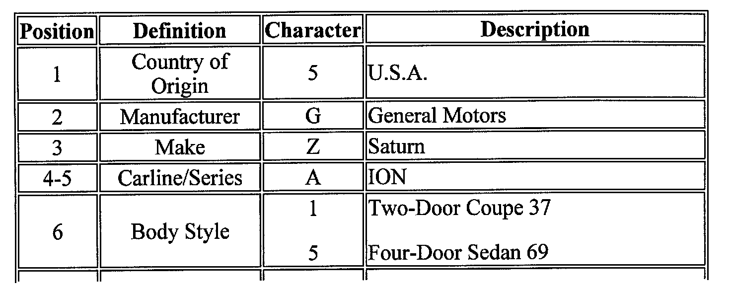 Vehicle Identification Number (VIN)