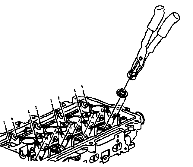 10. Using the J 36017 remove the valve seal.