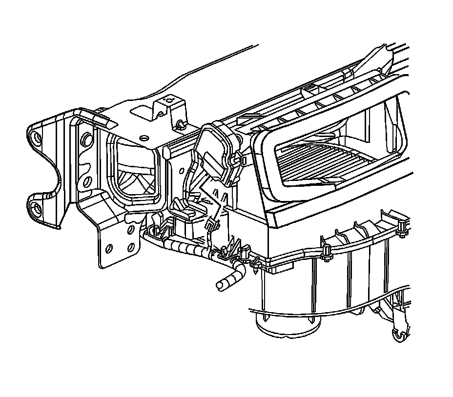 4. Place the HVAC module in the vehicle. Align the HVAC module drain tube and front of dash studs to the vehicle.