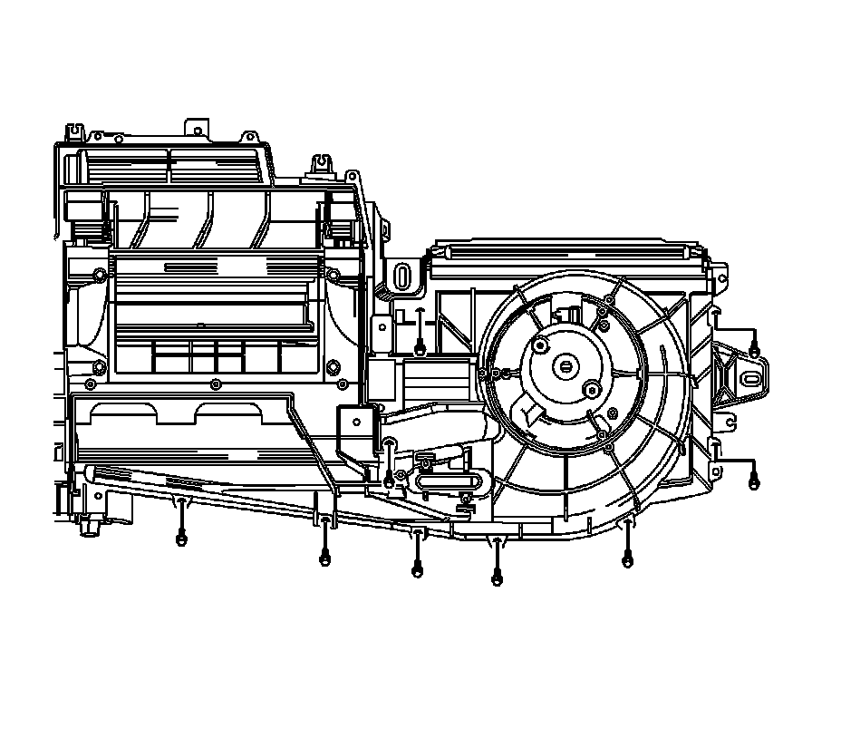 IMPORTANT: Make certain that the heater core cover is properly positioned and is fully seated on the HVAC module before installing the screws. Be sure to install all heater core cover screws.