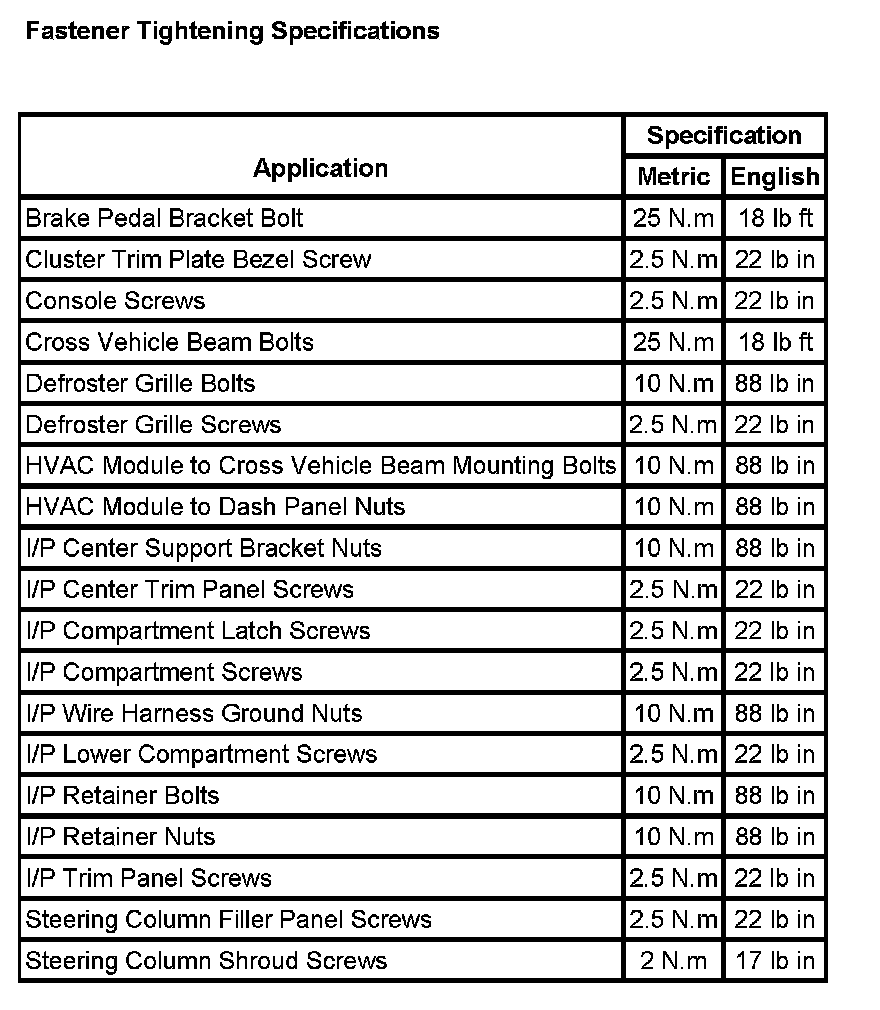 Instrument Panel, Gauges and Warning Indicators: Specifications