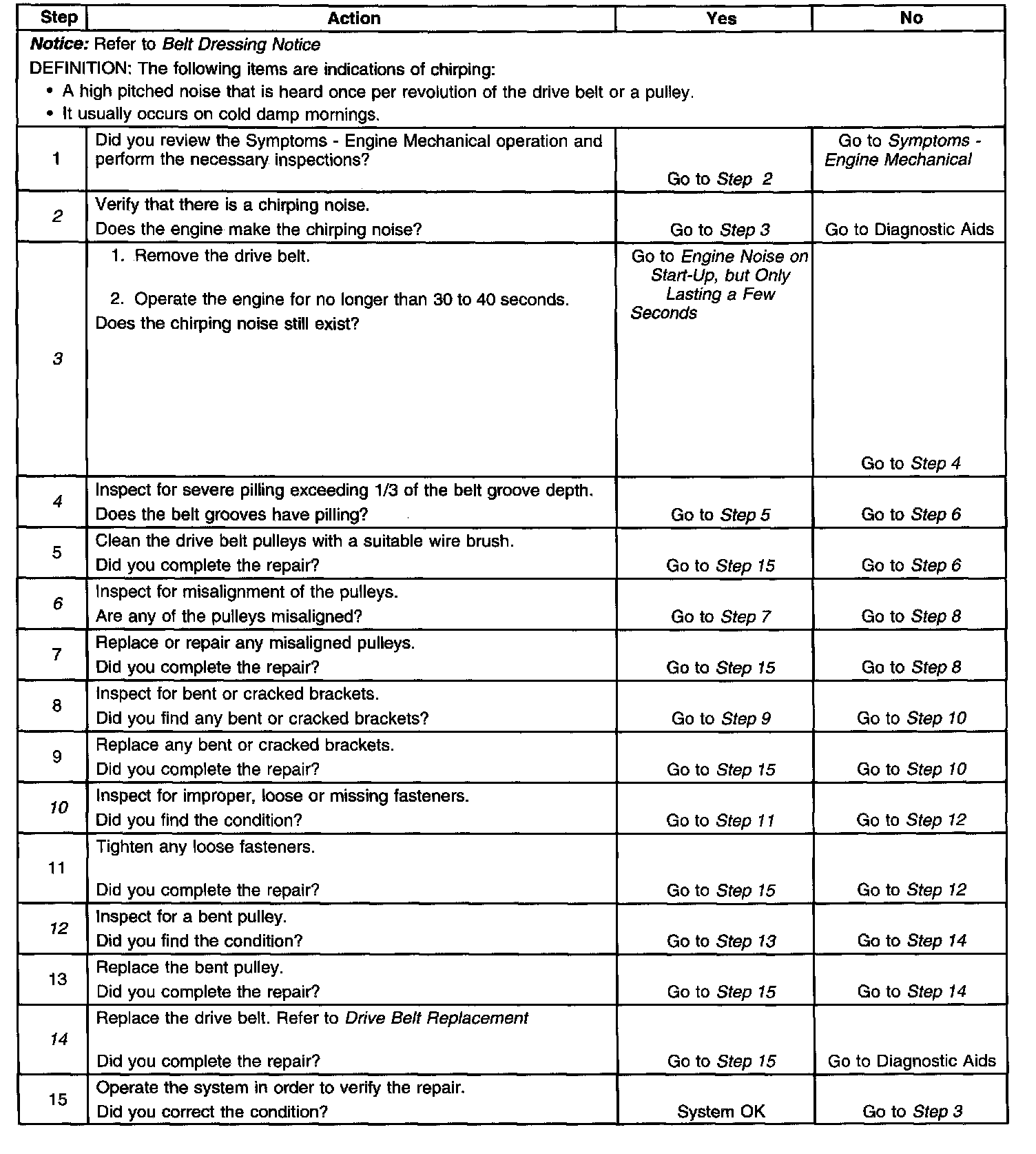 Drive Belt Chirping DiagnosisSteps 1-15: