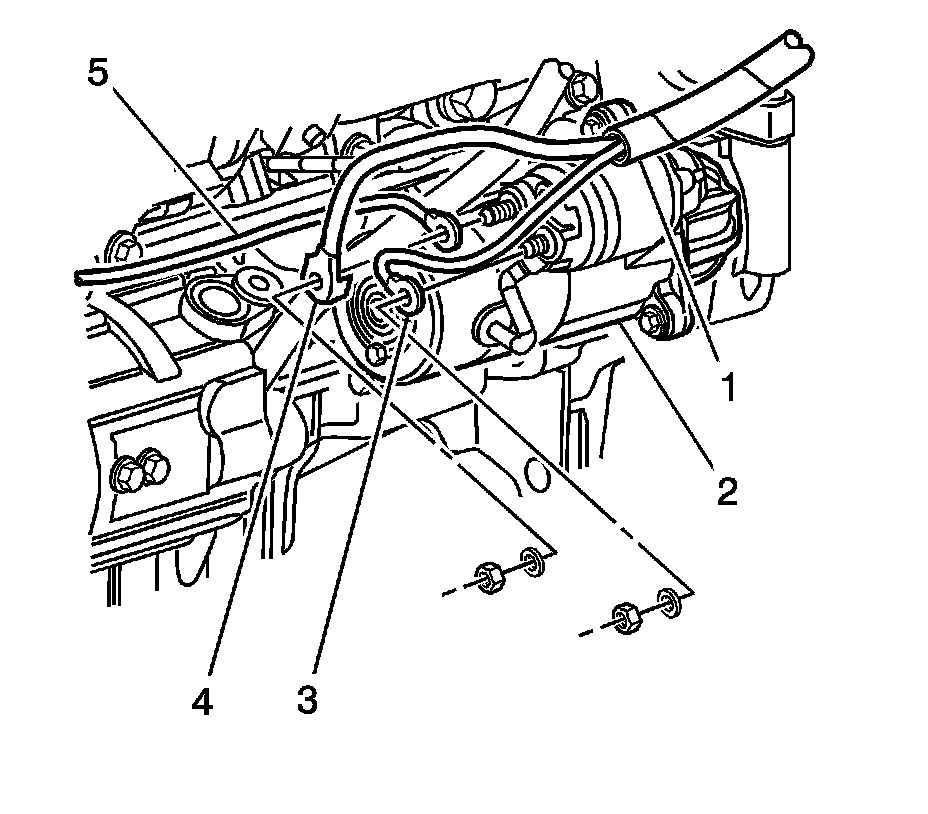 3. Disconnect the electrical connectors (3,4,5) from the starter.