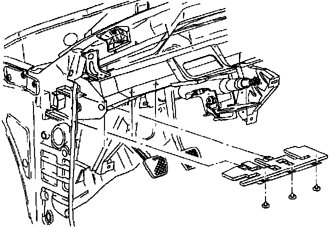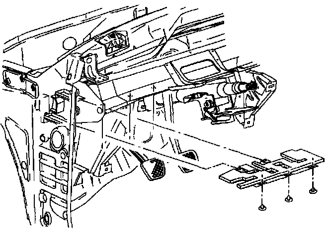 8. Remove pedal bracket to I/P beam fasteners.