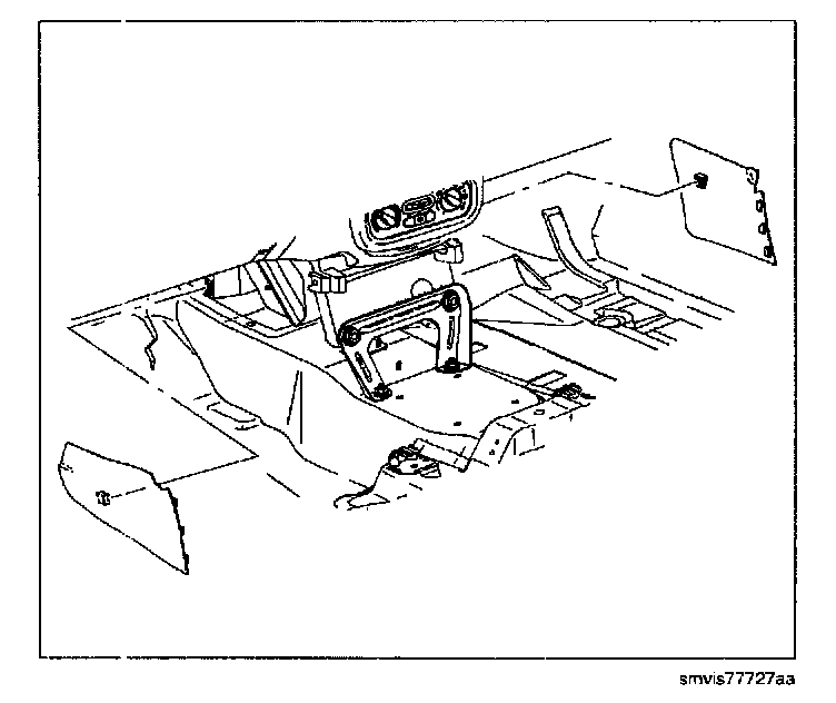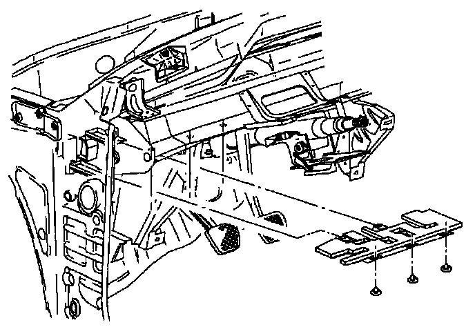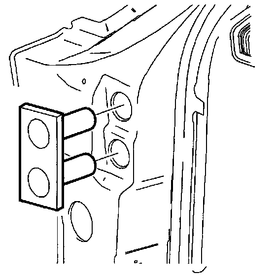 95. Install Cockpit Assembly Aid J 43894 into A-pillar beam bolt holes. Tool flange should fit tight to A-pillar surface when completely installed. This tool is needed to prevent accidentally dropping a bolt inside A-pillar.