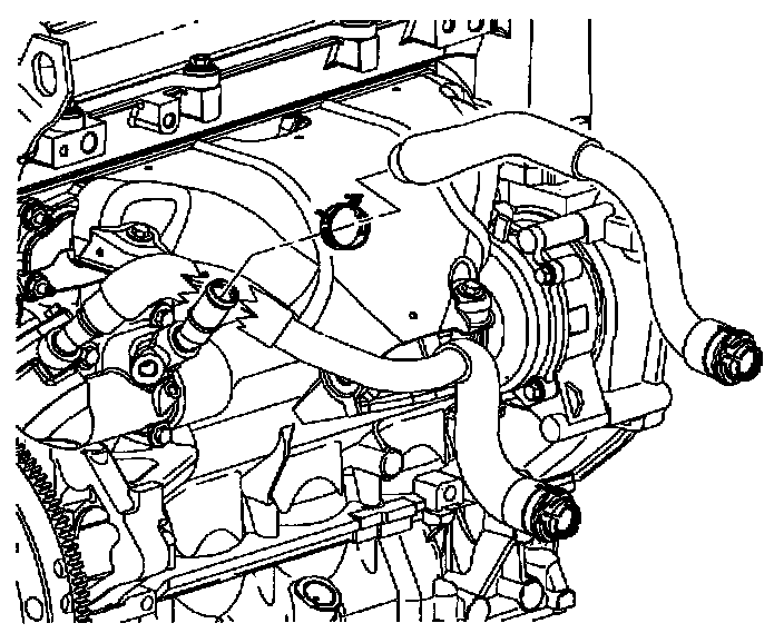 11. Install heater return hose to nipple and position clamp at 6:00 position on L81, 12:00 position on L61.