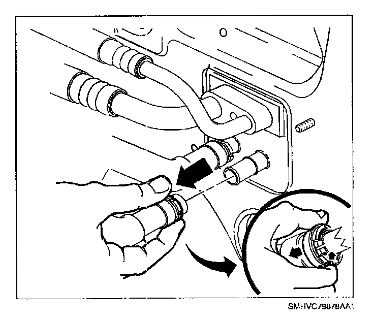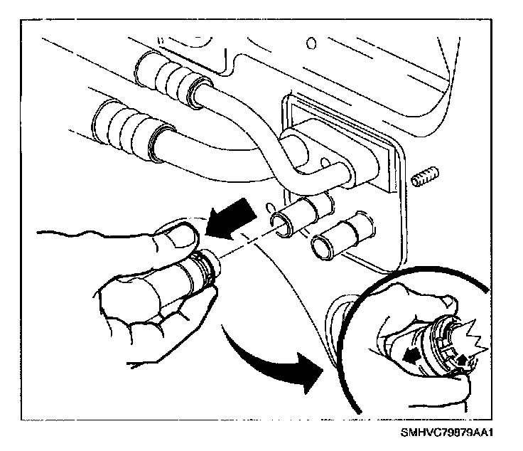 4. Remove suction/liquid line assembly block from TXV by gently rocking while pulling forward.