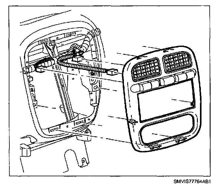29. Remove center trim plate by grabbing trim plate at A/C vent area and gently pulling to disengage attaching dips.