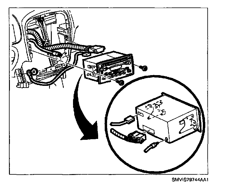 31. Remove radio fasteners and partially remove radio to expose radio electrical connections.