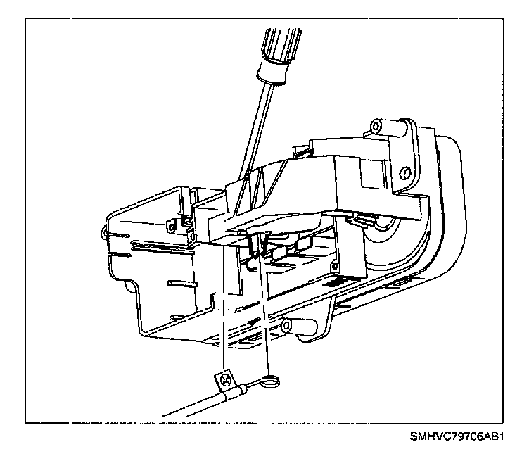 77. Unsnap hood release handle from I/P by using a small screwdriver to disengage retainer clips on both sides.