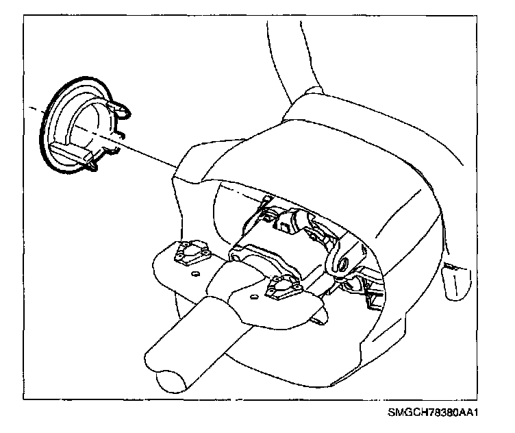 IMPORTANT: Behind the nut is a plastic locator for steering column. This piece will center steering column in front of driver in the event of an accident.