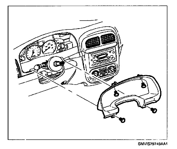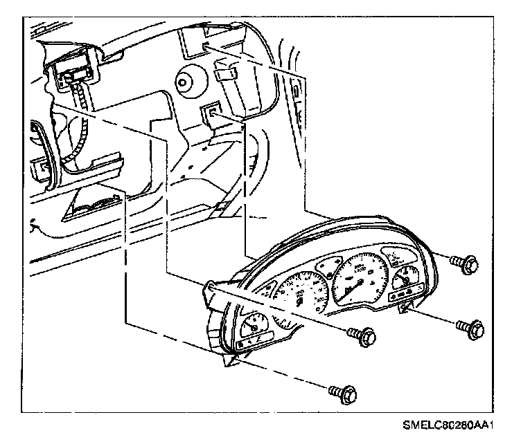 60. Remove upper and lower cluster fasteners and pull rearward to remove cluster.