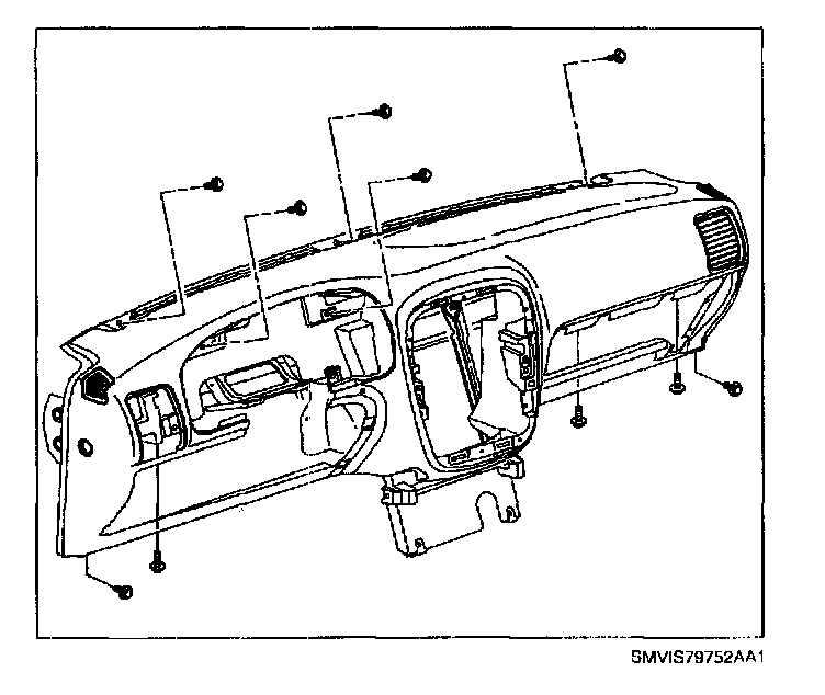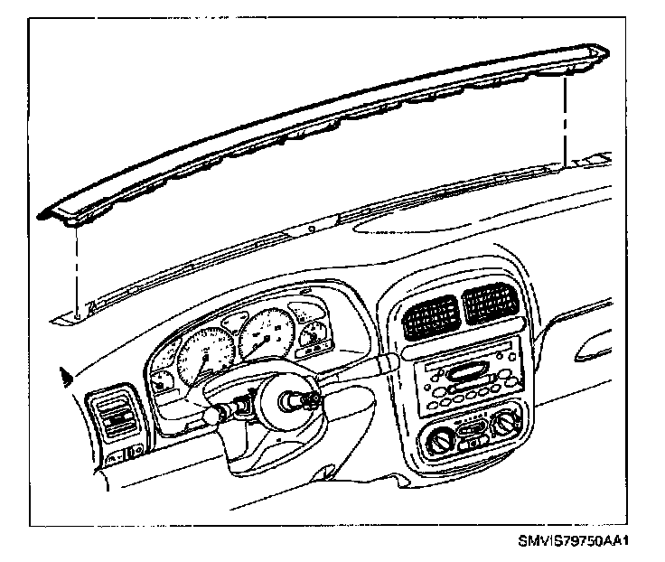 76. Pull upward at vent locations and remove windshield defroster grille.