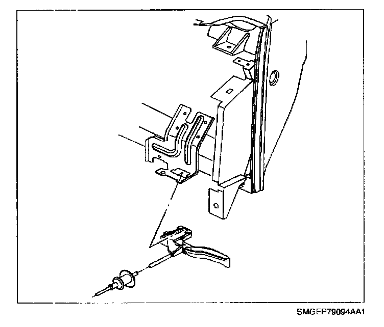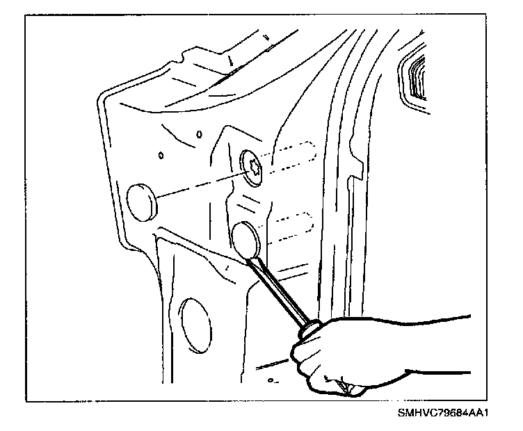 92. Open drivers side door completely and install protective covering on door inner hinge area to prevent damage to paint.