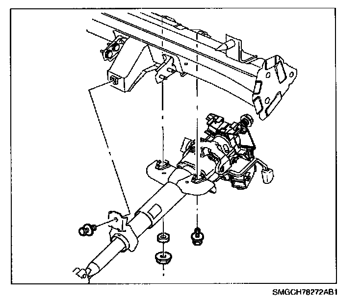 100. Using a large screwdriver, pry steering column braces apart to clear beam studs and remove beam from vehicle.