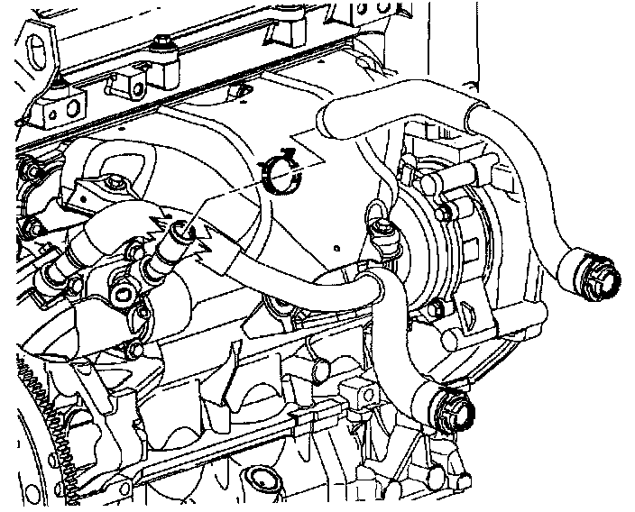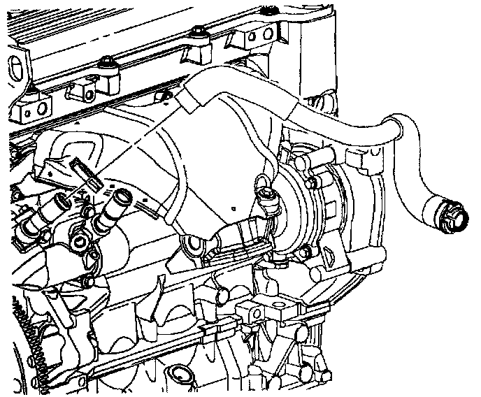 3. Install heater outlet hose to thermostat housing at left side of housing.