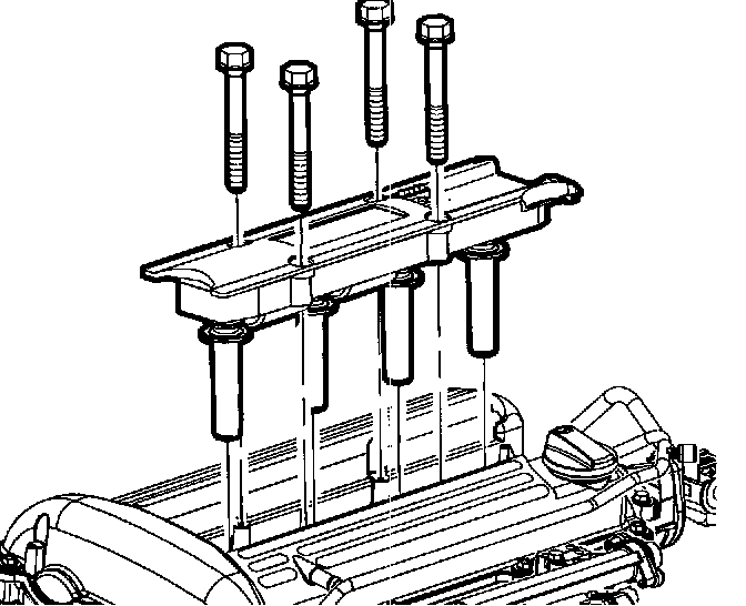 14. Disconnect fuel rail bracket and bolt at rear of cam cover.