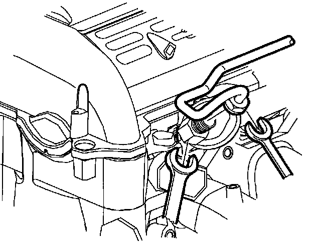 NOTICE: An open-end wrench must be used to support the fuel line to rail connection during loosening/tightening to avoid damaging fuel rail assembly.