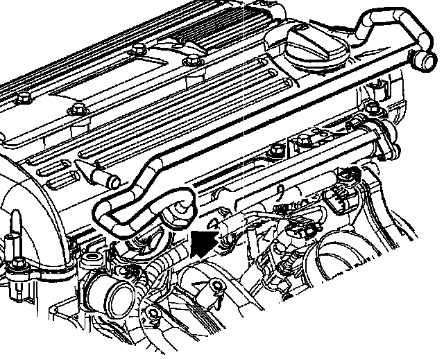 10. Disconnect degas hose at clamp at cylinder head and position away from cam cover assembly.