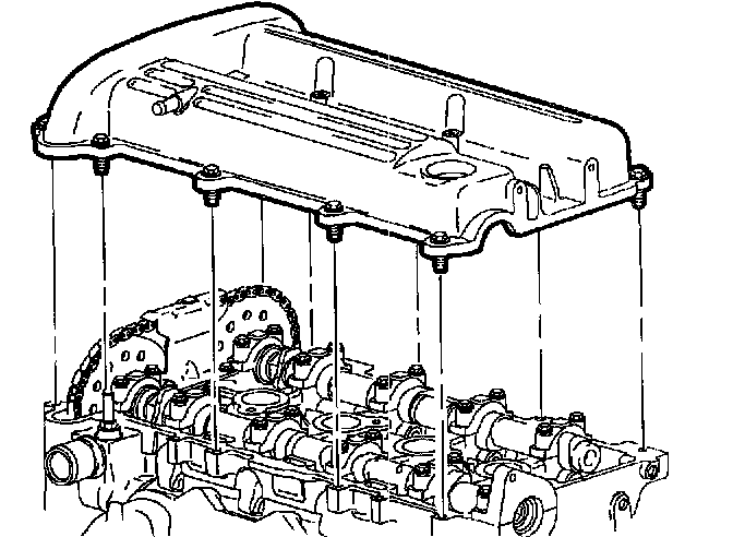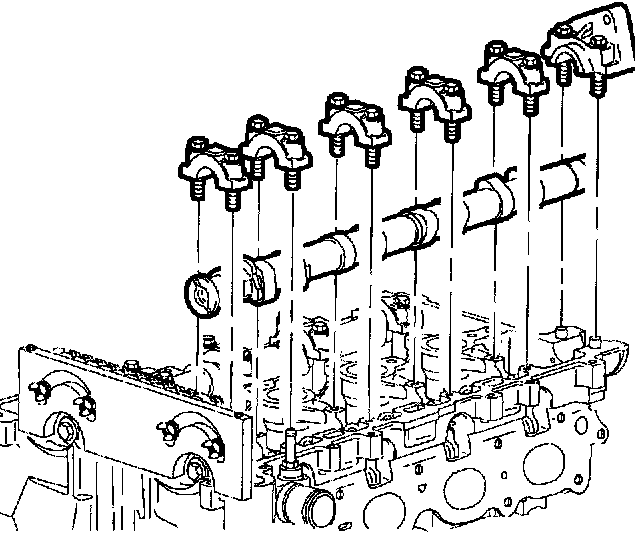 31. Uniformly loosen and remove remaining camshaft bearing cap bolts.