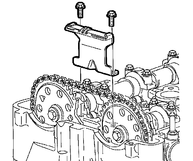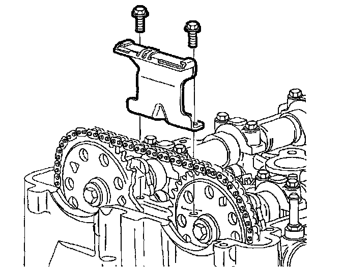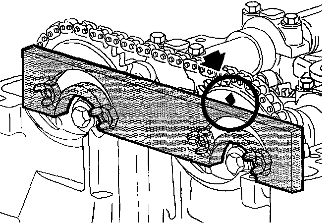 NOTICE: Verify timing chain is properly positioned on the fixed guide or guide damage will occur.
