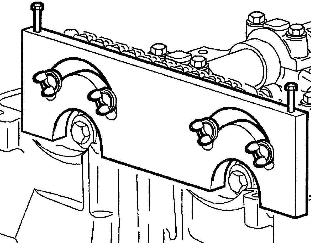 NOTICE: During camshaft removal procedure, the pistons are locked by Camshaft Support Holding tool J43655 and SHOULD NOT be rotated. Tool damage may result and timing chain re-timing will be required.