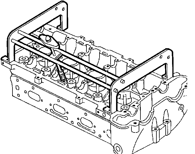 35. Install Valve Spring Compressor J43649. Use four cam cover bolts to mount the supports to cylinder head. Thread bolts into cam cover holes.