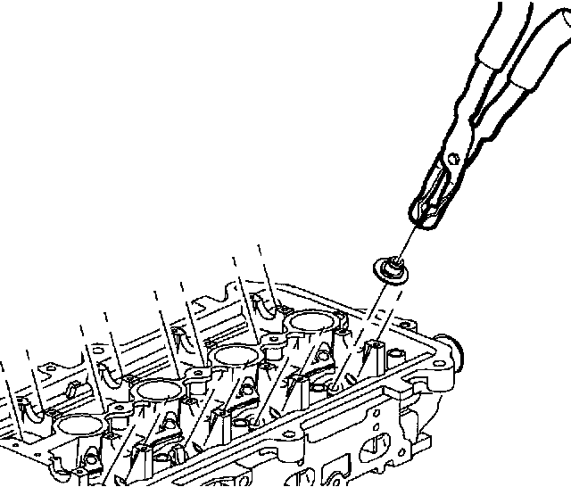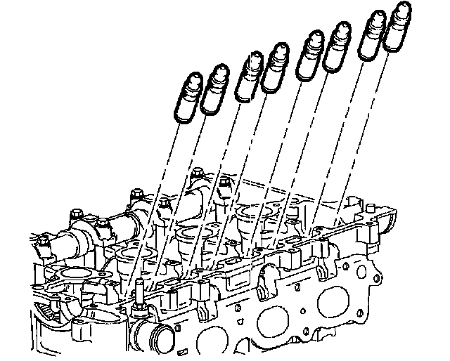 NOTICE: After cylinder head, block or lifter replacement, it will be necessary to allow the engine to idle for three to five minutes. If lifters are noisy, warm the engine up at a low rpm (less than 2,000). After coolant temperature has reached approximately 85 degrees C (185 degrees F), cycle the engine rpm from idle to 3,000 rpm for approximately 10 minutes or drive the vehicle 8 kilometers (5 miles) to purge the air. If air cannot be purged, the faulty lifters will have to be replaced. Lifters that are pumped up may cause PCM misfire codes to set. Continue to operate the engine until the lifters bleed down. Use a Scan tool to clear codes and malfunction history.