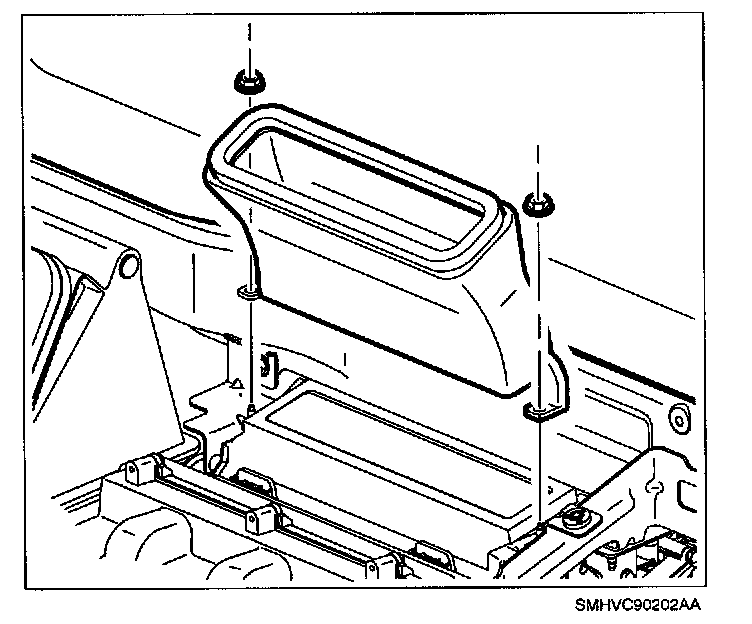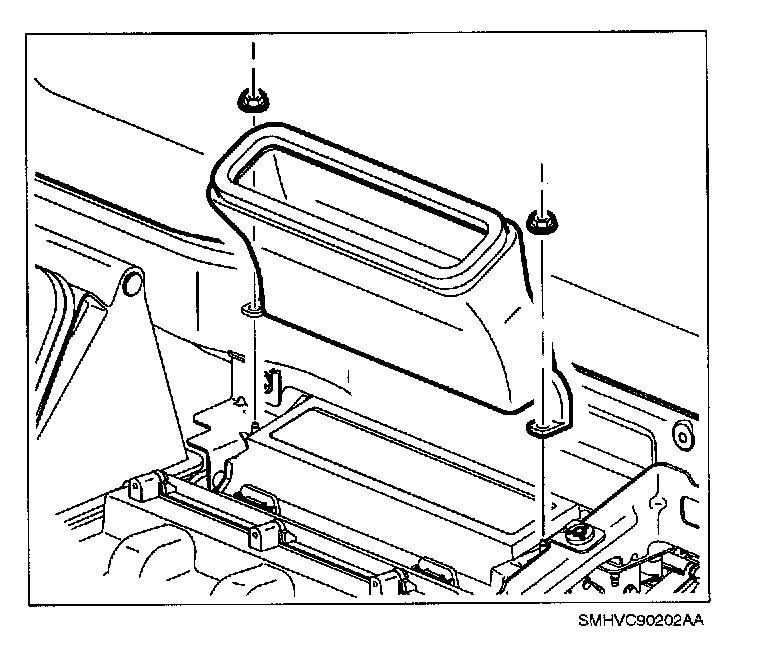 2. Remove defrost duct to HVAC module nuts and remove defrost duct.