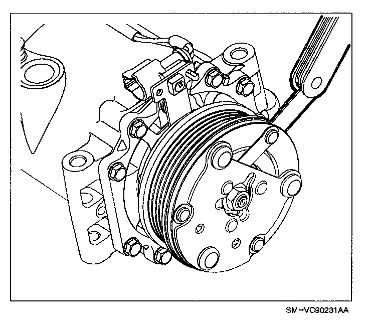 1. Clean A/C clutch field coil and pulley mounting surfaces.