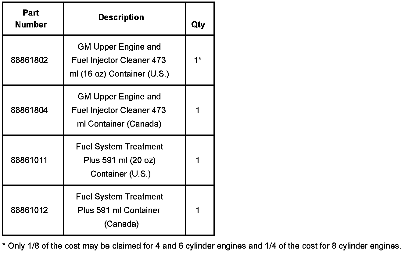 * One bottle of GM Fuel System Treatment Plus, P/N 88861011 (in Canada, P/N 88861012)