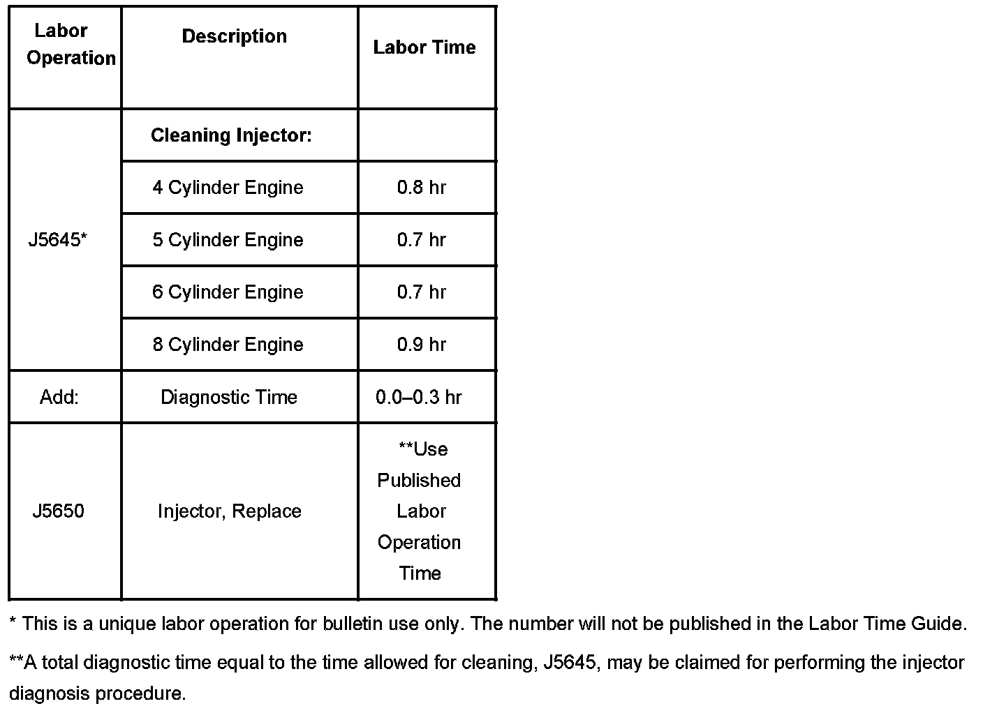 Vehicles with less than 160 km (100 mi) on the odometer should not have the injectors cleaned. These vehicles should have any out of specification injectors replaced.