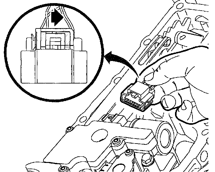 3. Press connector tab and remove connector for the input and output speed sensor assembly from the control valve body assembly.